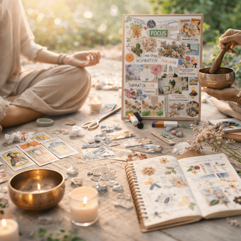 Certaines pratiques comme le vision board ou les ateliers créatifs introspectifs permettent de mettre en forme ses envies, ses projets et ses aspirations.