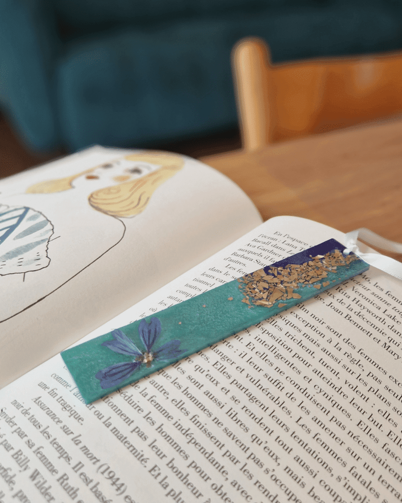 Lors de cet atelier, venez réaliser deux marque-pages uniques et colorés en résine UV : choisissez vos couleurs et vos effets : paillettes, fleurs séchées, transparence, dégradé… testez et amusez-vous à créer des pièces personnalisées !