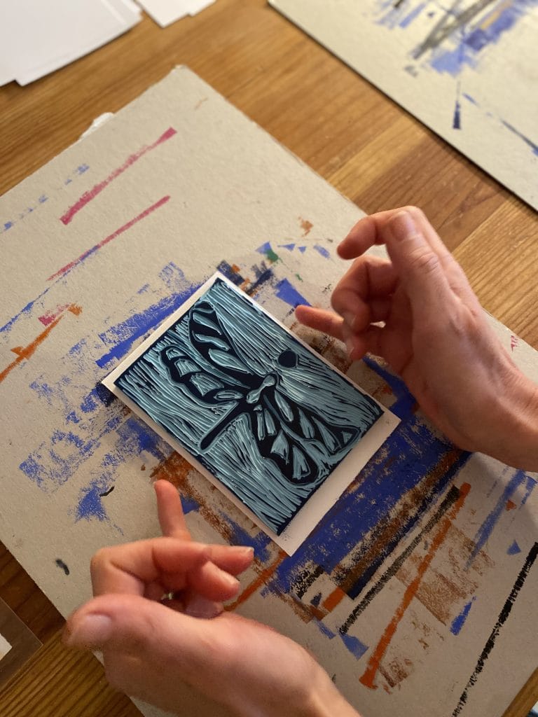 Mon premier atelier linogravure avec Laura s’est parfaitement bien passé !