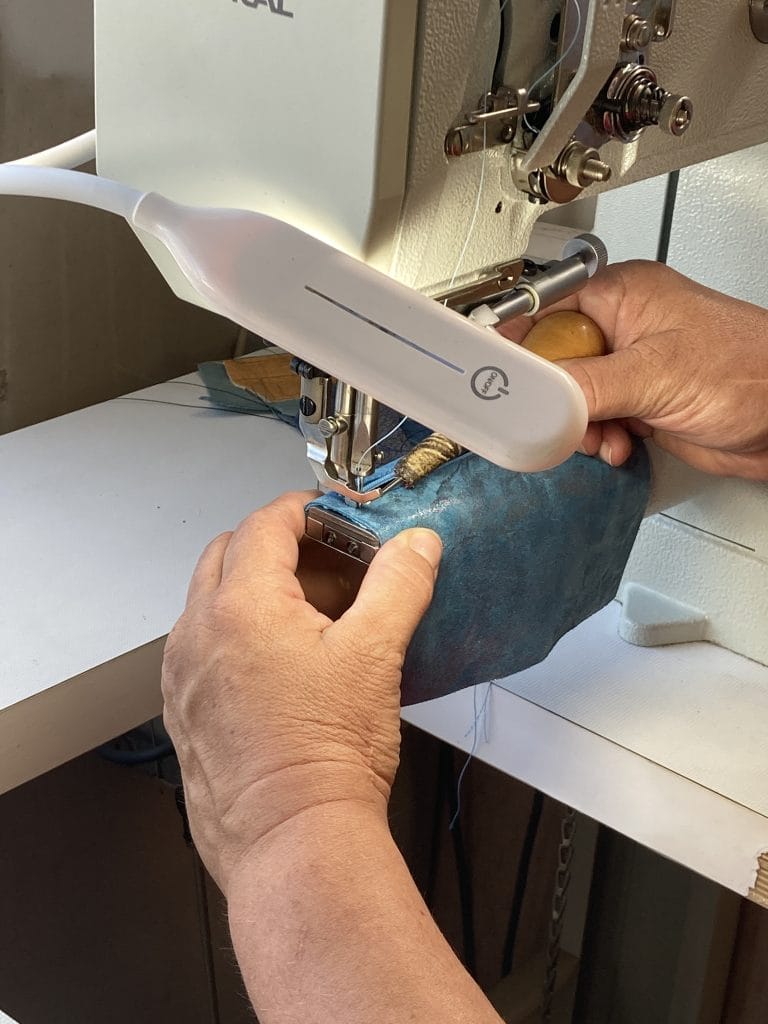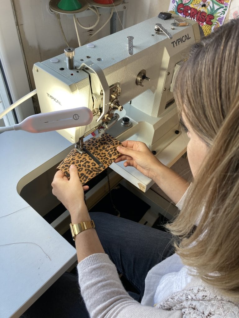 Vous commencez par éveiller vos sens : le toucher des matières, le jeu des textures, le choix des couleurs. Peu à peu, votre projet prend forme. À l’aide de gabarits, vous tracez les pièces au stylo d’argent, puis vient le moment de couper, d’ajuster, de choisir le fil, les rivets, pressions et fermetures qui donneront caractère à votre création.