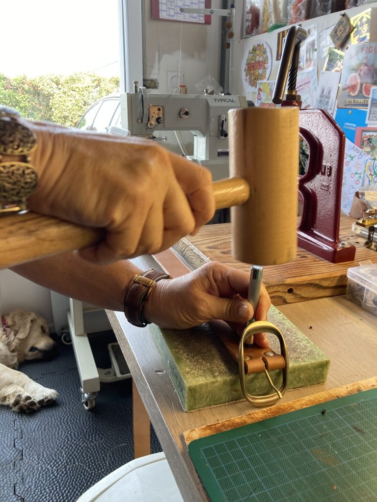 Pour la finition, vous teinterez et polirez les bords avant de sertir la boucle et, pourquoi pas, d’ajouter quelques rivets décoratifs.
