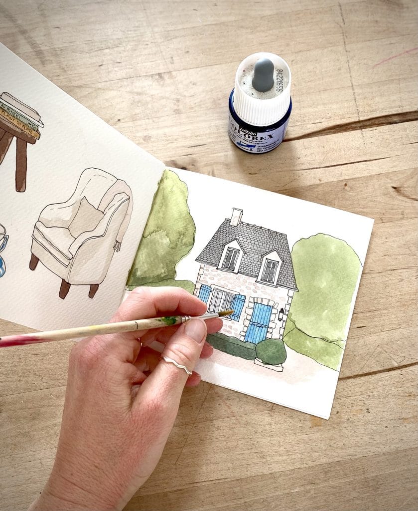 Je fournis un petit carnet mais vous pouvez très bien venir avec votre propre carnet. Il faut juste vous assurer que les pages aient un grammage supérieur à 250 grammes que le papier puisse supporter l’aquarelle.