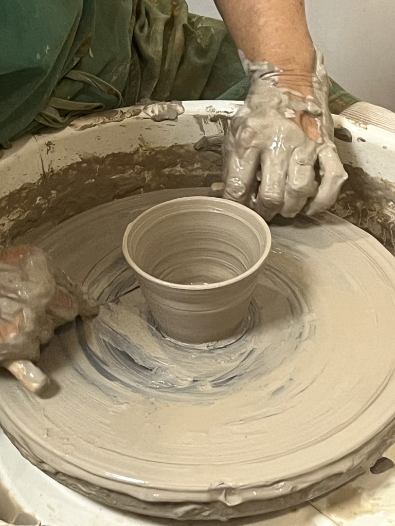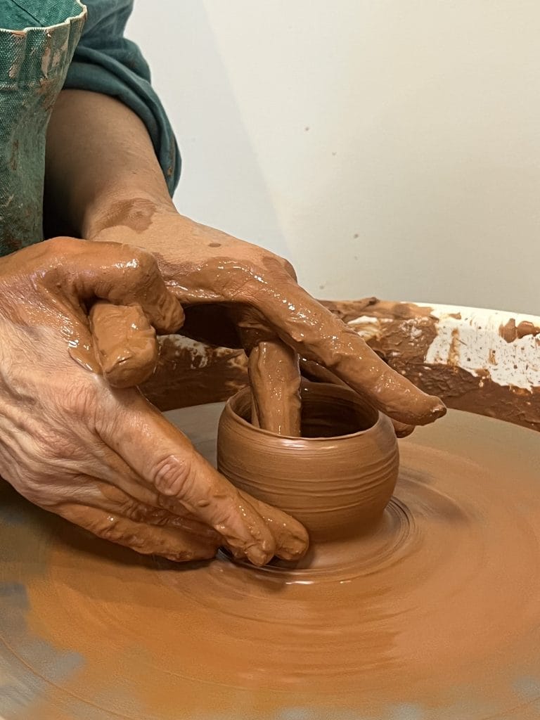 Après avoir désaéré la terre, vous assisterez à une démonstration de la conception d’un bol autour du tour de tournage.