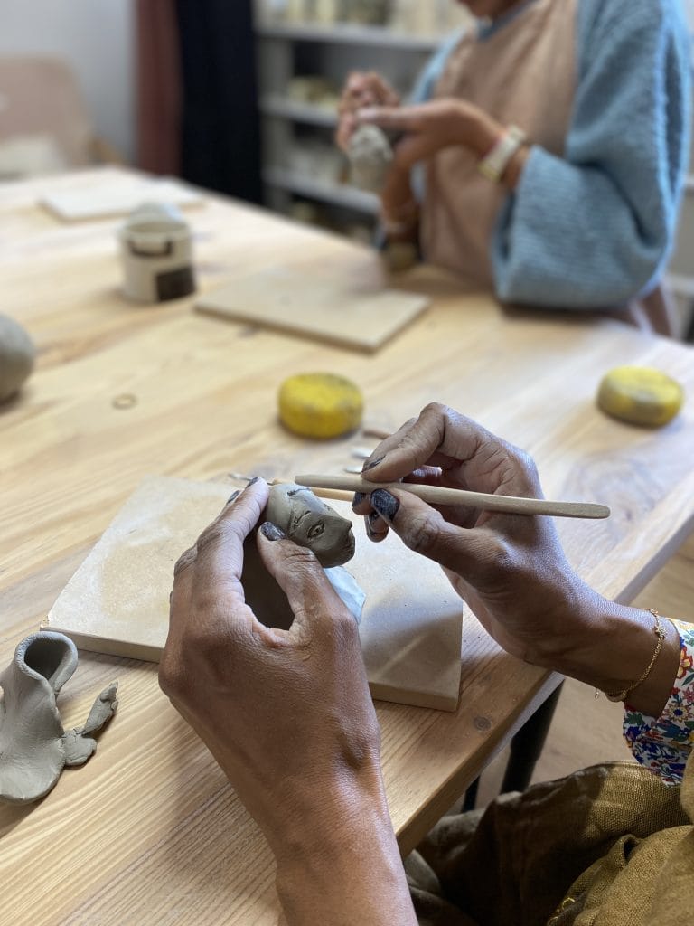 JOUR 2 : Finition de l’objet modelé (ex : fixer la hanse, poser décors, finitions de lissage) + création d’une pièce de taille moyenne (ex: petit vase, petite assiette, objet de déco.