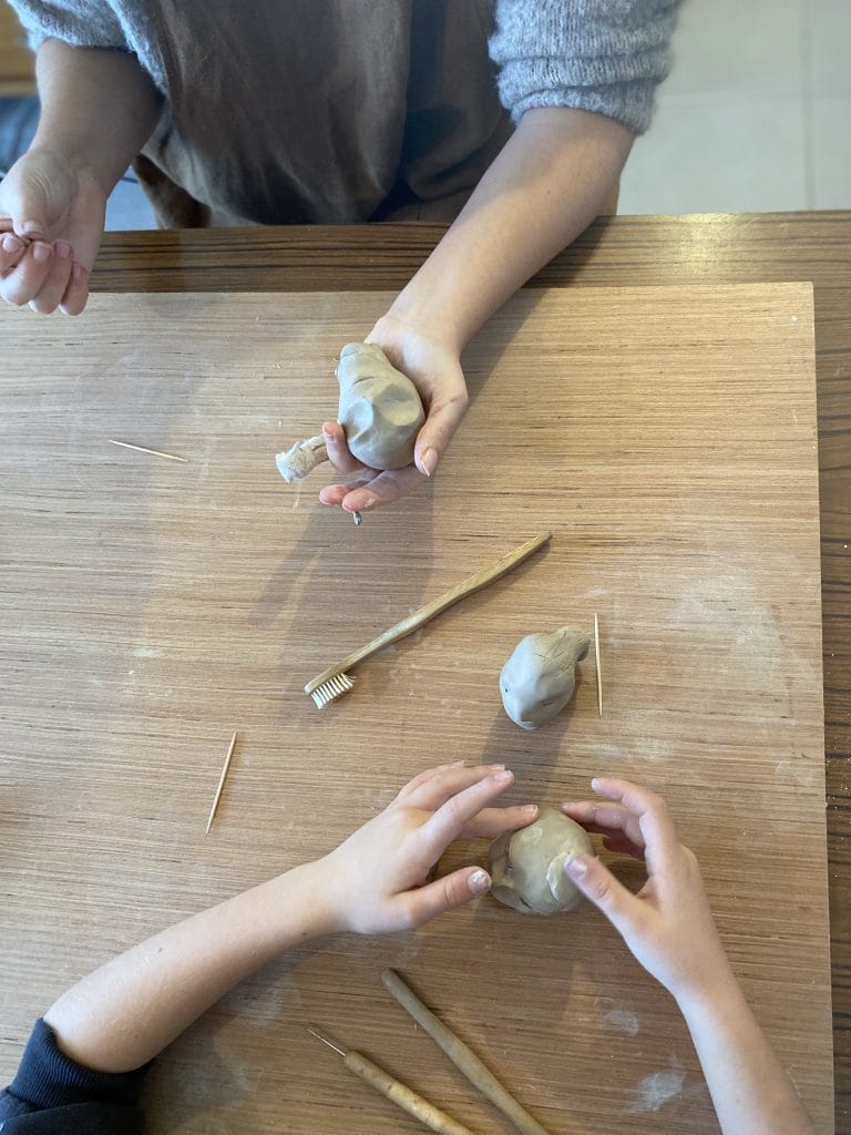 JOUR 1 : Jeux de sculpture pour découvrir l’argile + créations d’une petit pièce en modelage (ex: tasse, petite boite , coupelle).