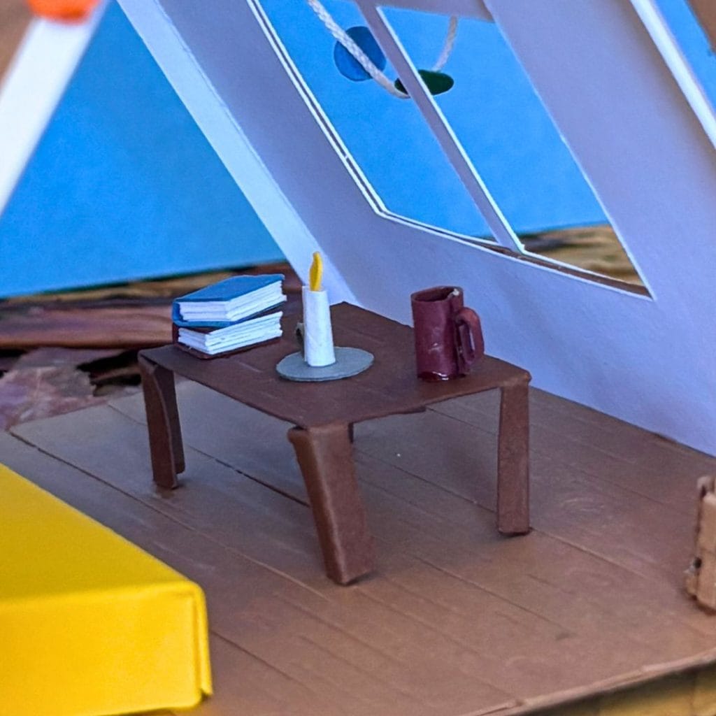 Prenez plaisir à fabriquer les petits éléments de décor : lit, coussins, table, bougeoir, livres, tasse, panier ou bien encore guirlande et agencez-les selon vos envies pour créer une scène chaleureuse dans laquelle chaque détail concourt au charme de l’ensemble.