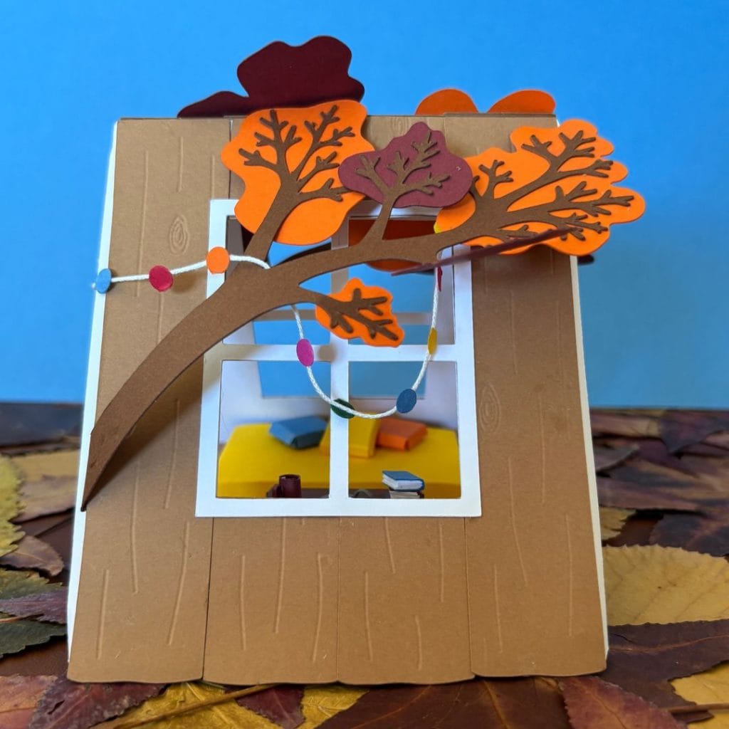 Initiez-vous au paper art et offrez-vous une pause créative en façonnant votre cabane miniature nichée dans un arbre aux couleurs de l’automne.