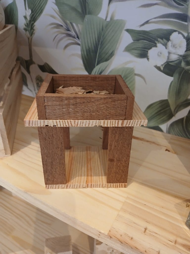 Bâtir avec soin : Assemblez les petites briquettes de bois pour élever une structure robuste et authentique, véritable socle de votre composition.